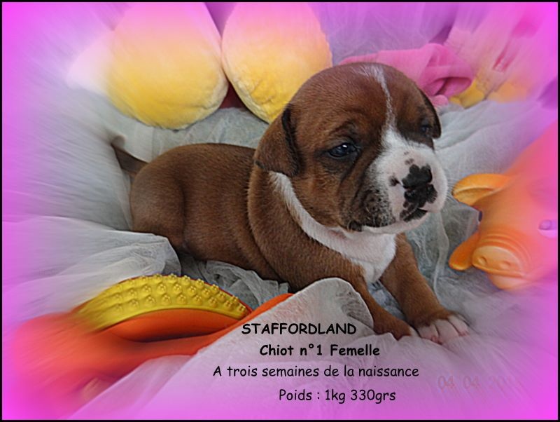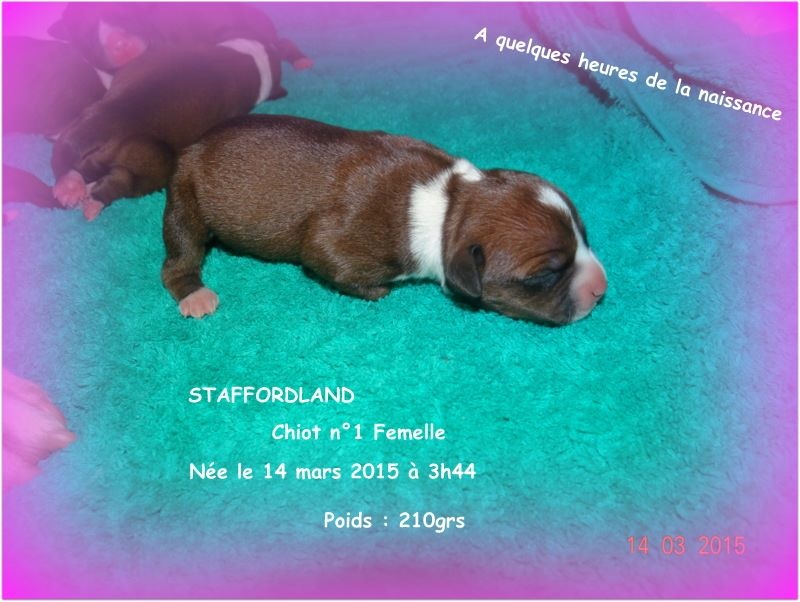 Le chiot n°1 est une femelle de couleur fauve panaché blanc. Elle est néé le 14 mars 2014 à 3h44. Et elle pèse 210grs. D'AUTRES PHOTOS et VIDEOS seront mises régulièrement sur notre site dans l'album photo et vidéo. N'hésitez pas à nous appeler au 06.75.71.99.77.