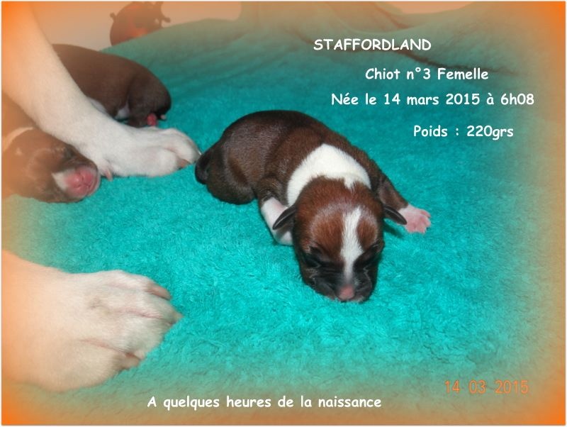Le chiot n°3 est une femelle de couleur fauve panaché blanc. Elle est néé le 14 mars 2014 à 6h08. Et elle pèse 220grs. D'AUTRES PHOTOS et VIDEOS seront mises régulièrement sur notre site dans l'album photo et vidéo. N'hésitez pas à nous appeler au 06.75.71.99.77.