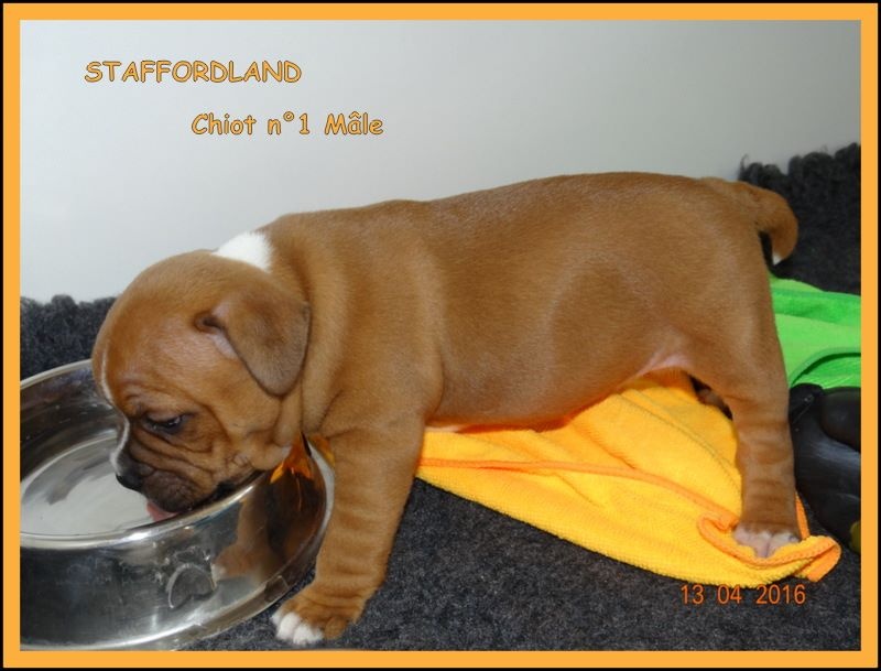 Le chiot n°1 est un mâle fauve panaché blanc. Il est né le 9 mars 2016 à 3h50. A sa naissance il pesait 240grs. D'AUTRES PHOTOS et VIDEOS seront mises régulièrement sur notre site dans l'album photo et vidéo. N'hésitez pas à réserver en nous téléphonant au 06.75.71.99.77. A bientôt